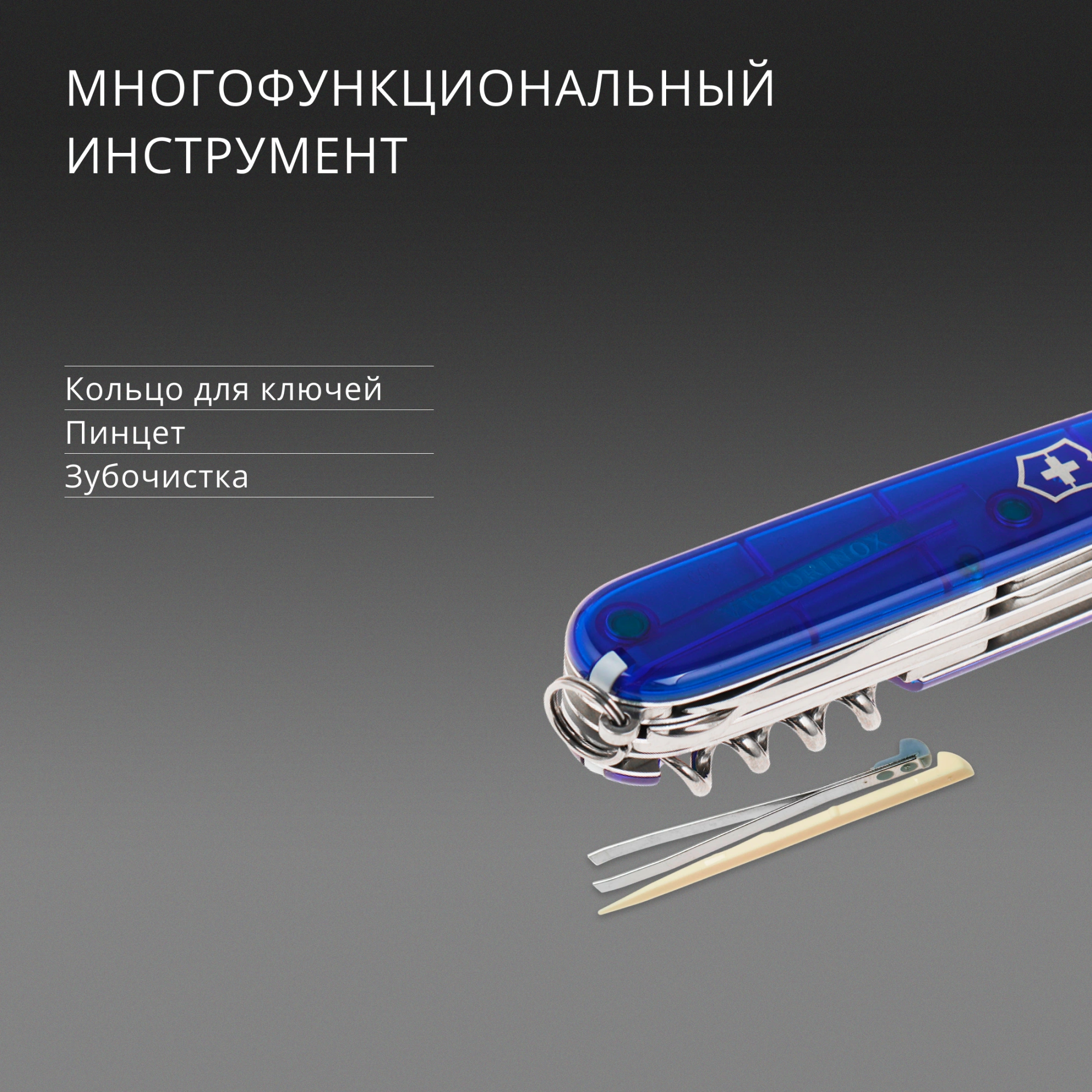 Нержавеющая сталь,Большое лезвие, малое лезвие, штопор, консервный нож с малой отверткой (также для винта с крестообразным шлицем), открывалка для бутылок с отверткой - инструментом для снятия изоляции, шило, кернер, кольцо для ключей, пинцет, зубочистка, ножницы, многофункциональный крючок,