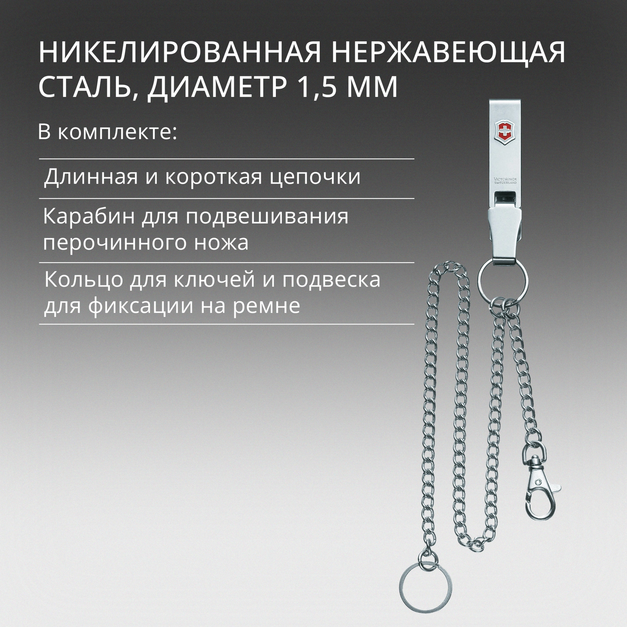Подвестка для армейских ножей. Изготовлена из нержавеющей стали. подвеска имеет две цепочки:короткую и длинную.Короткая цепочка имеет карабин и предназначена для подвещивания ножа.Длинная цепочка имеет кольцо и предназначена для подвешивания ключей.Крепление подвески производится с помощью крепления