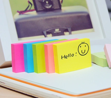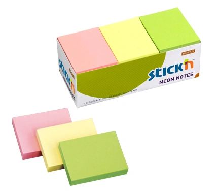 Самоклеящийся бумажный блок для записей, выполнен в неоновых цветах