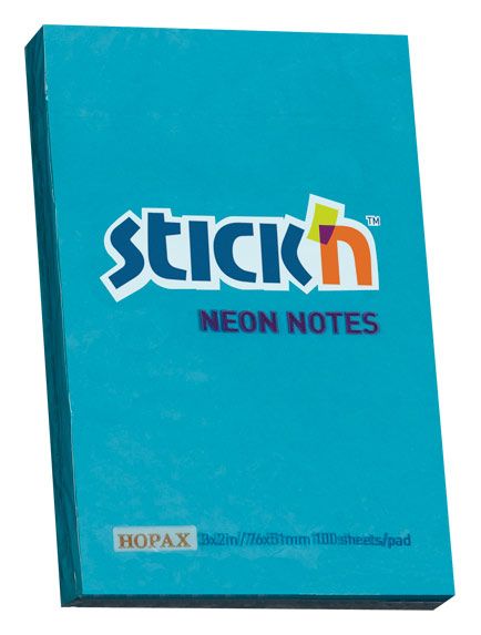 Блок самоклеящийся бумажный Stick`n 21207 51x76мм 100лист. 70г/м2 неон голубой