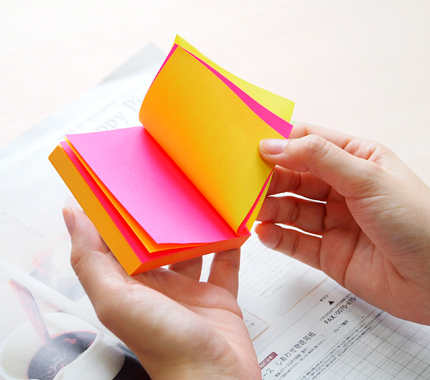 Самоклеящийся блок для записей, выполнен в неоновых цветах