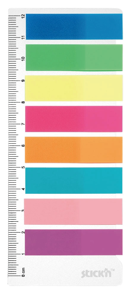 Закладки самокл. индексы пластиковые Stick`n 21345 12x45мм 8цв.в упак. 25лист на линейке европодвес