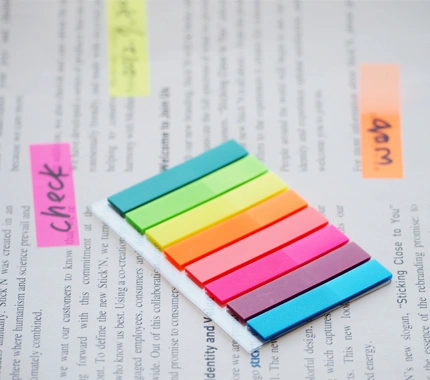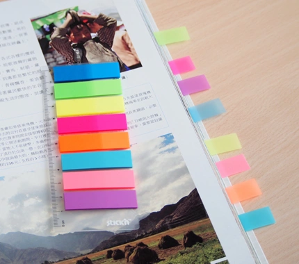 Самоклеящиеся пластиковые закладки, выполнены в неоновых цветах