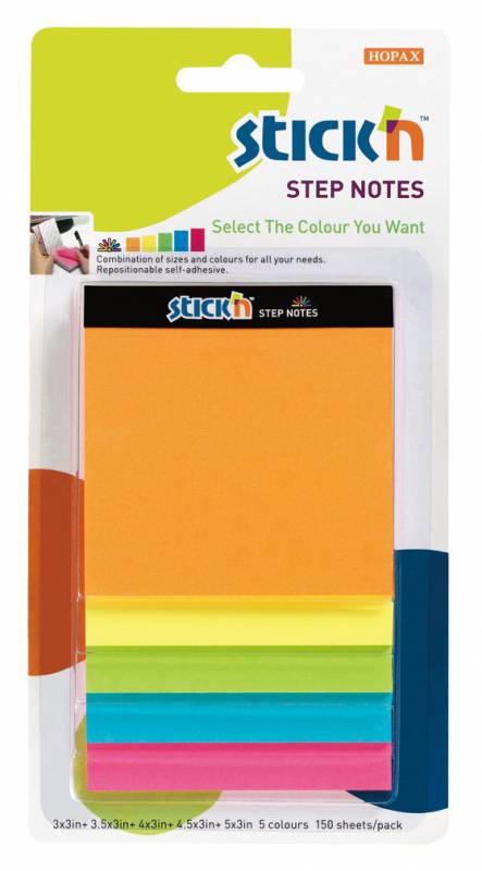 Блок самоклеящийся бумажный Stick`n Magic 21423 150лист. неон 5цв.в упак. несколько размеров