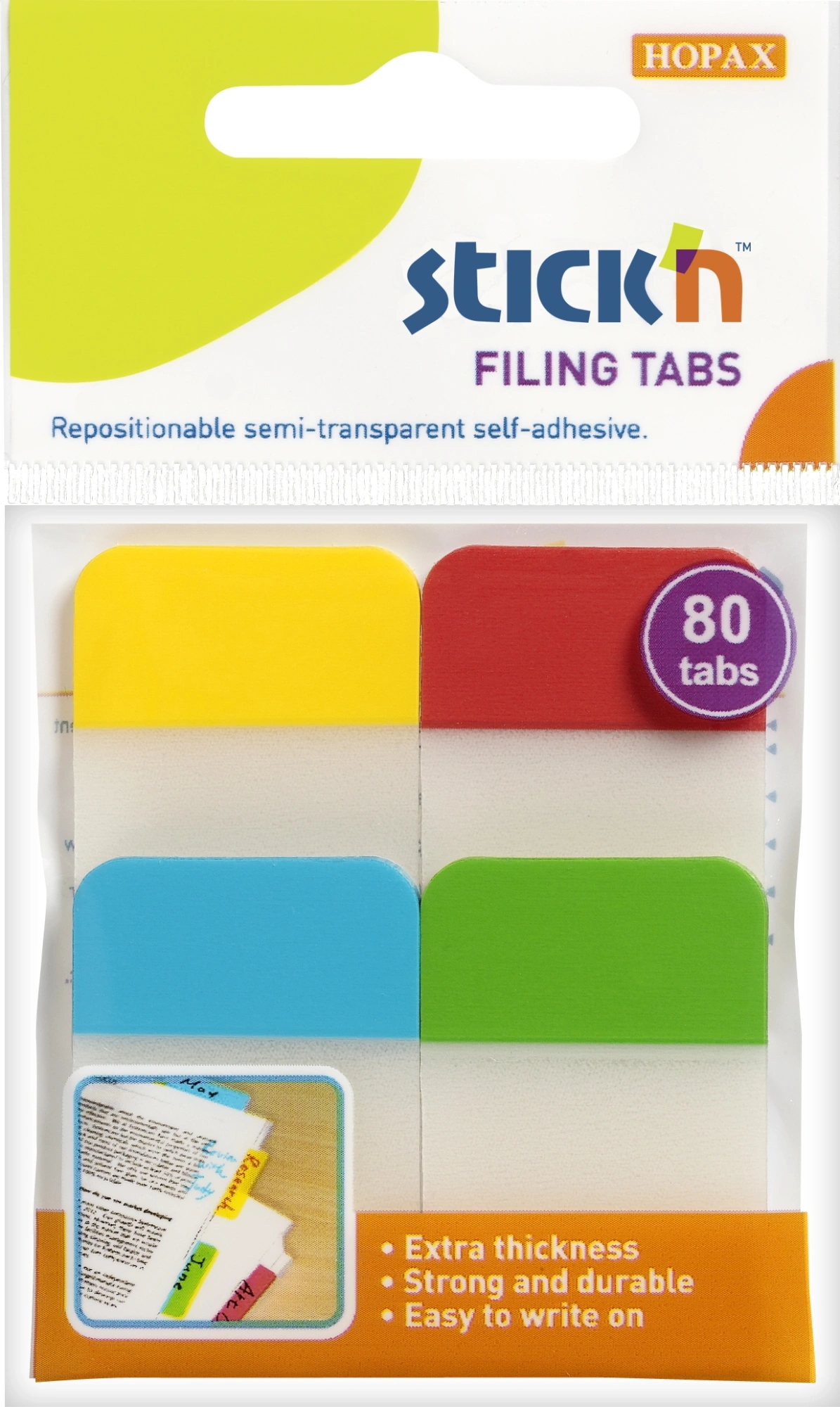 Закладки самокл. разделители пластиковые Stick`n 21607 25x38мм с цветным краем 4цв.в упак. 20лист европодвес