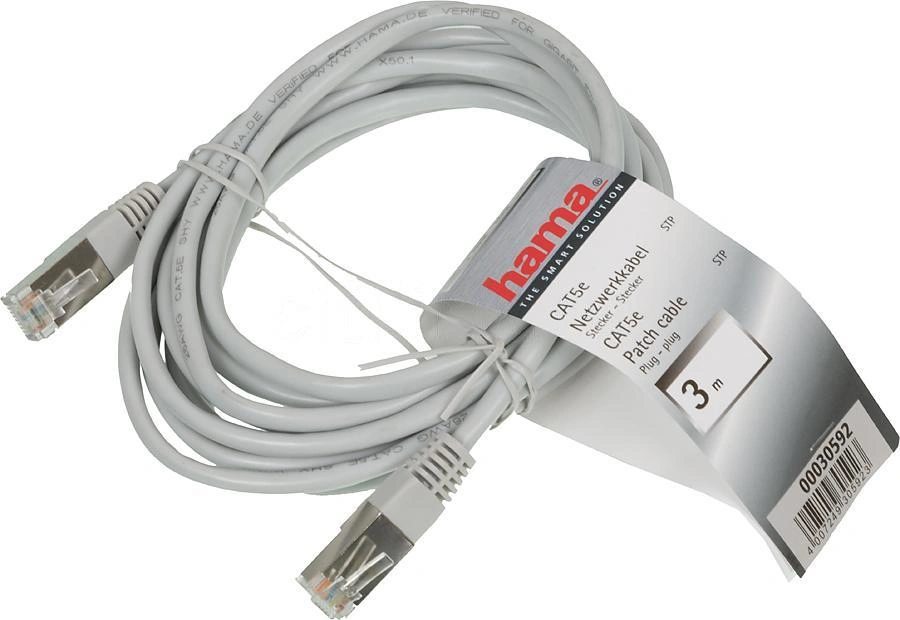 Патч-корд Hama H-30592 STP cat5E 3м серый RJ-45 (m)-RJ-45 (m)