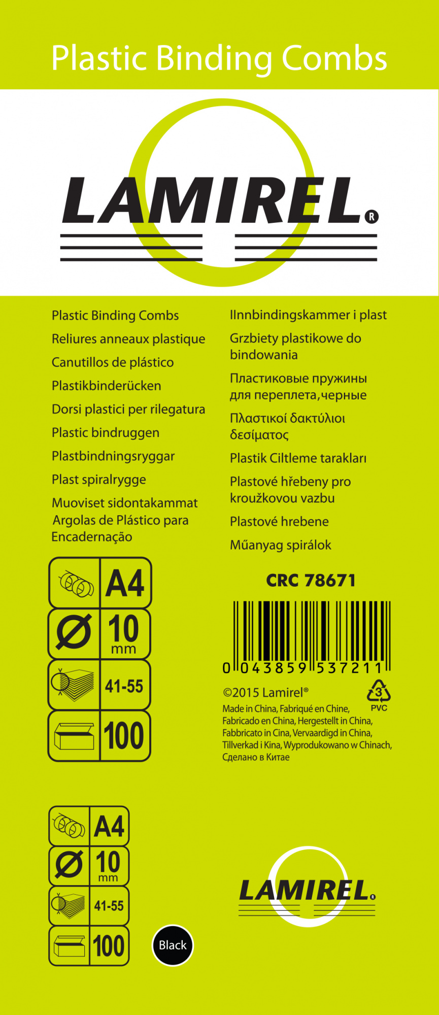 Пружины для переплета пластиковые Fellowes d=10мм 41-55лист A4 черный (100шт) Lamirel LA-7867102