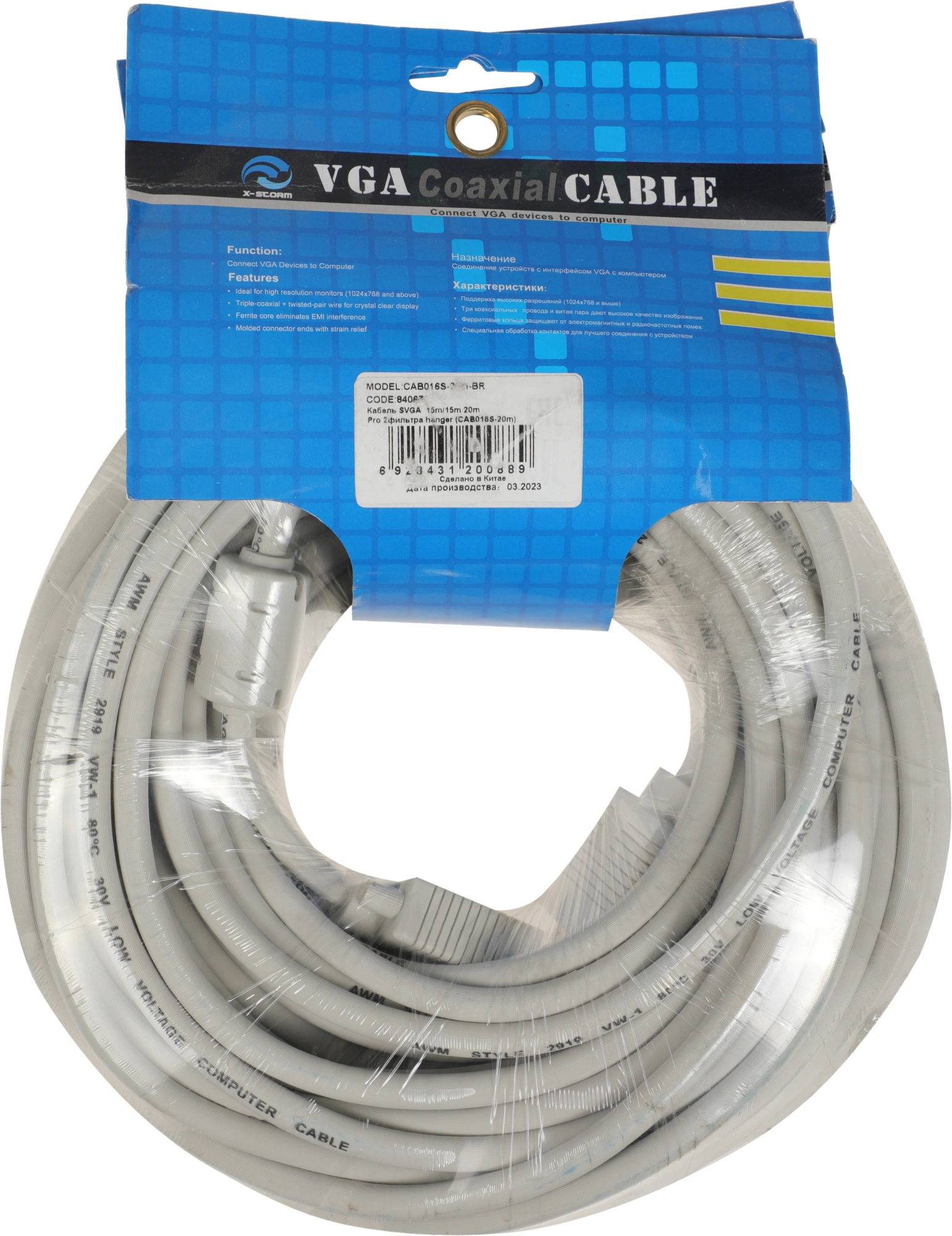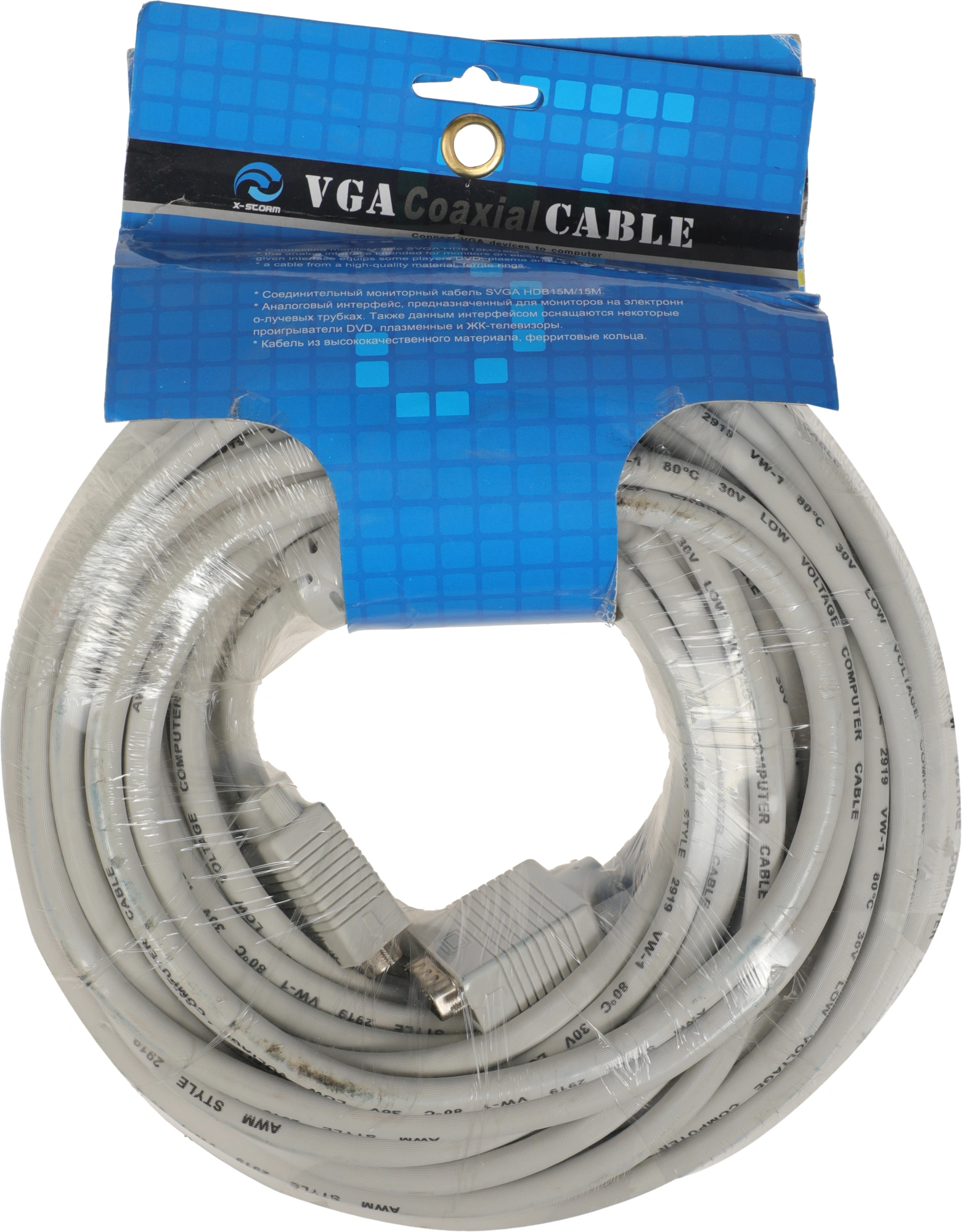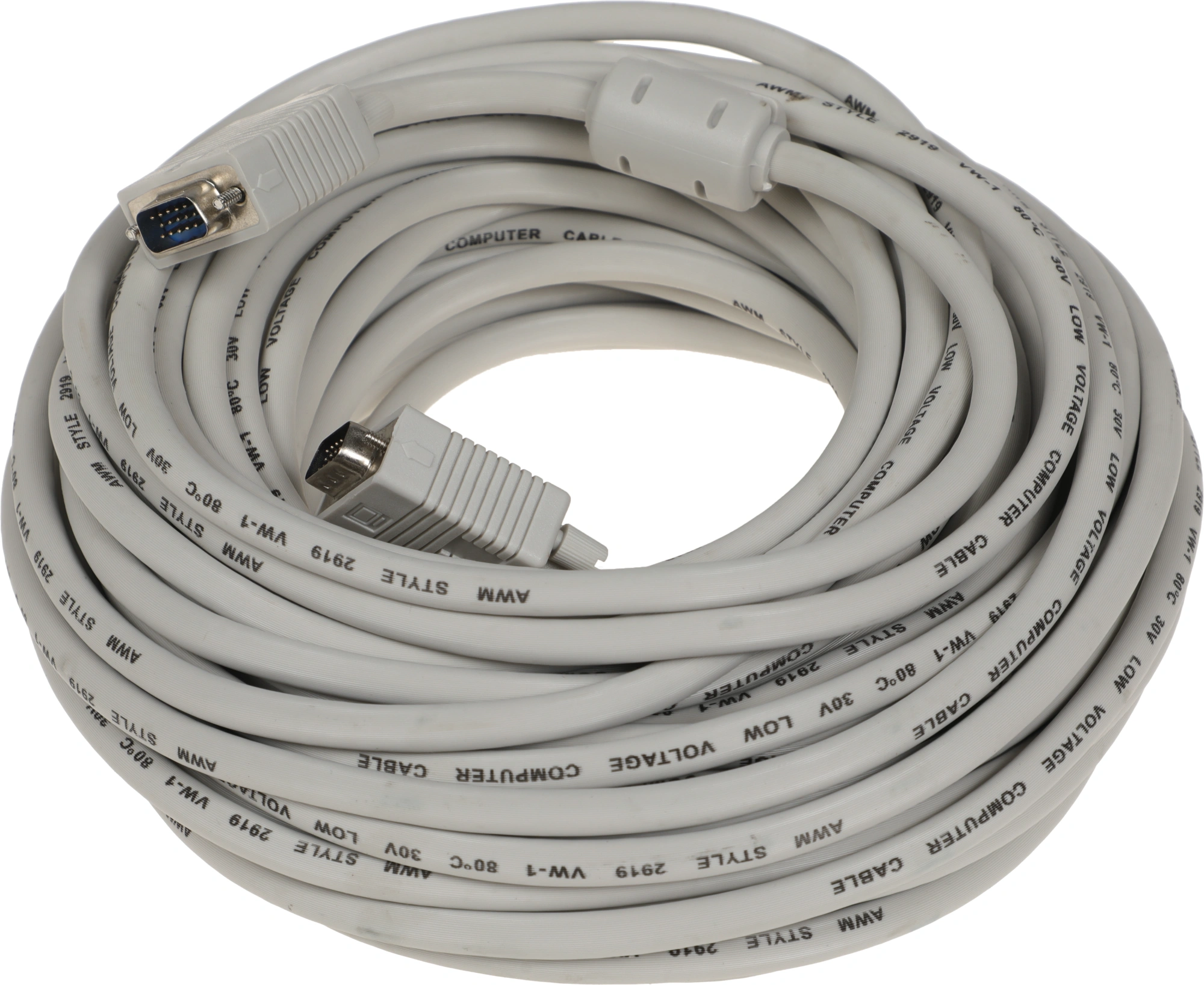 VGA кабель длиной 20 метров, дающий огромные возможности по размещению оборудования в больших помещениях. Встроенные ферритовые кольца блокируют помехи искажающие идущий по проводу сигнал, таким образом повышая его качество.