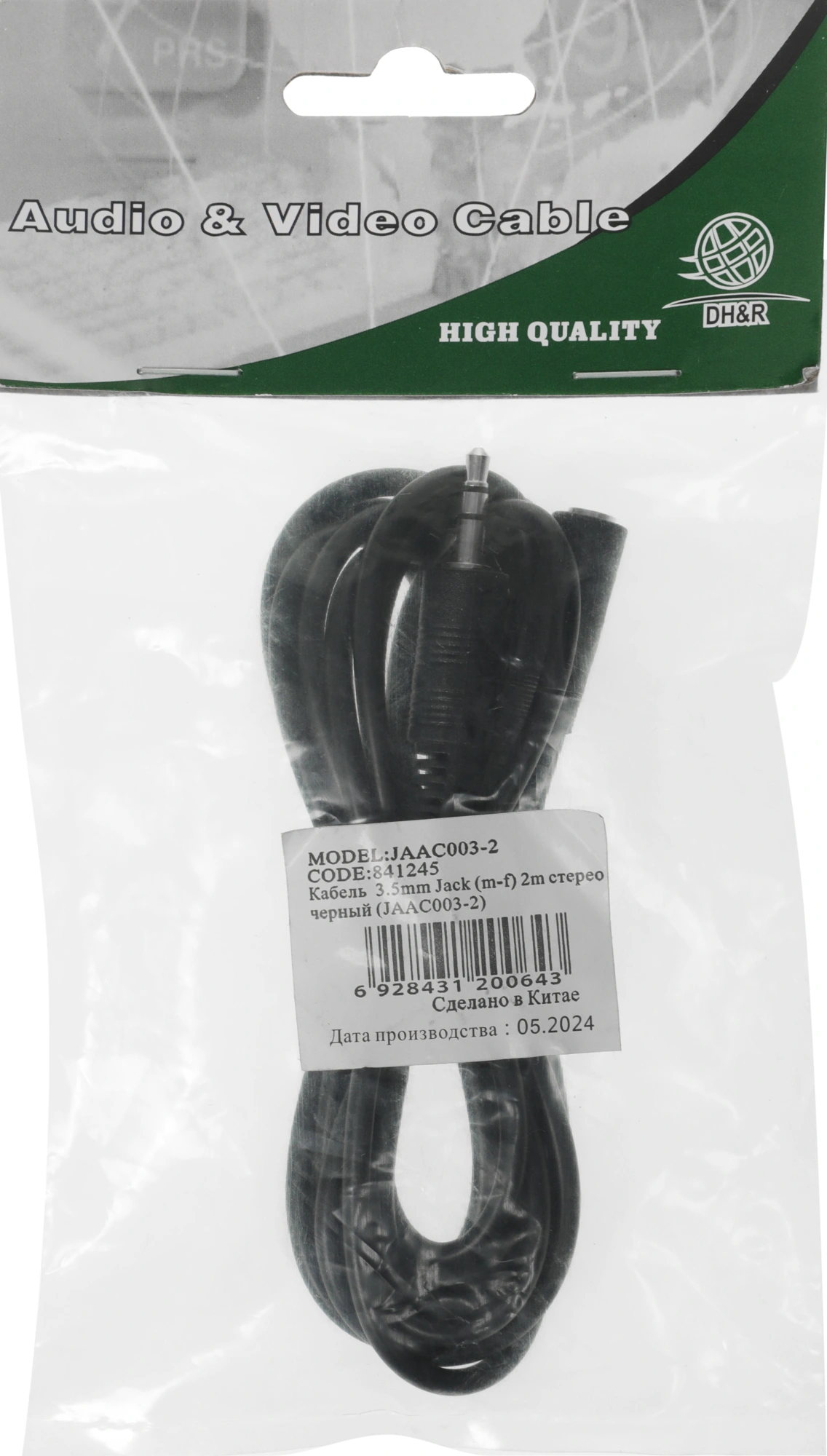 Кабель аудио Ningbo Jack 3.5 (m)/Jack 3.5 (f) 2м. черный (JAAC003-2)