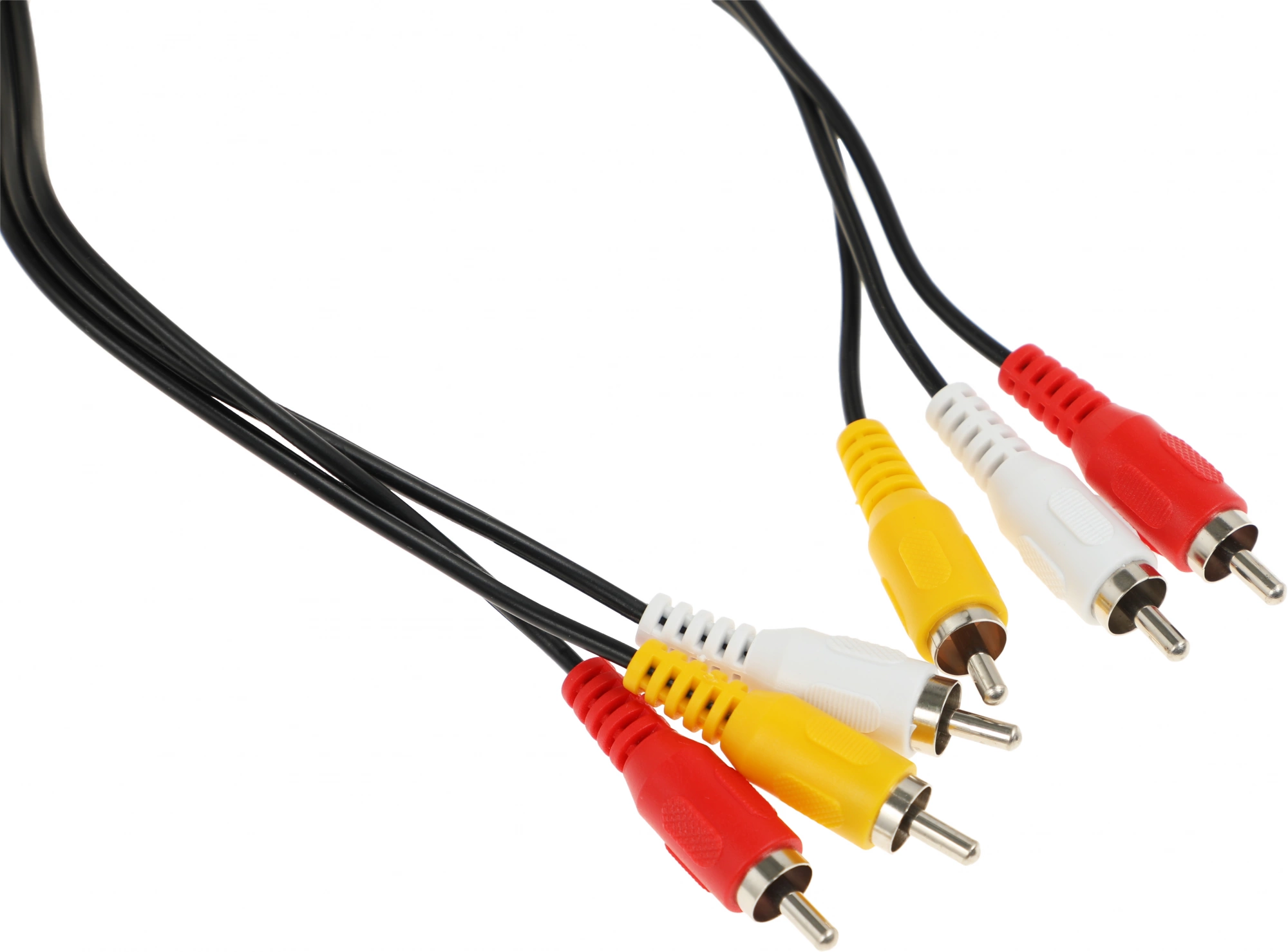 Тройной кабель RCA для передачи аудио и видеосигнала от DVD плеера или видеомагнитофона к телевизору или проектору.