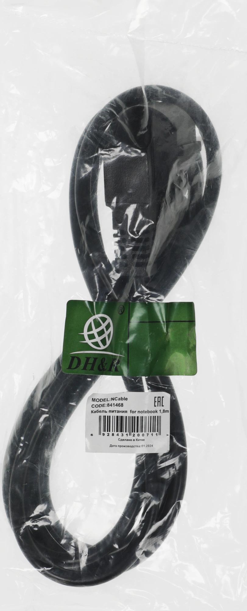 Кабель для подключения блока питания ноутбука к электросети. Длина кабеля 1,8 метра.