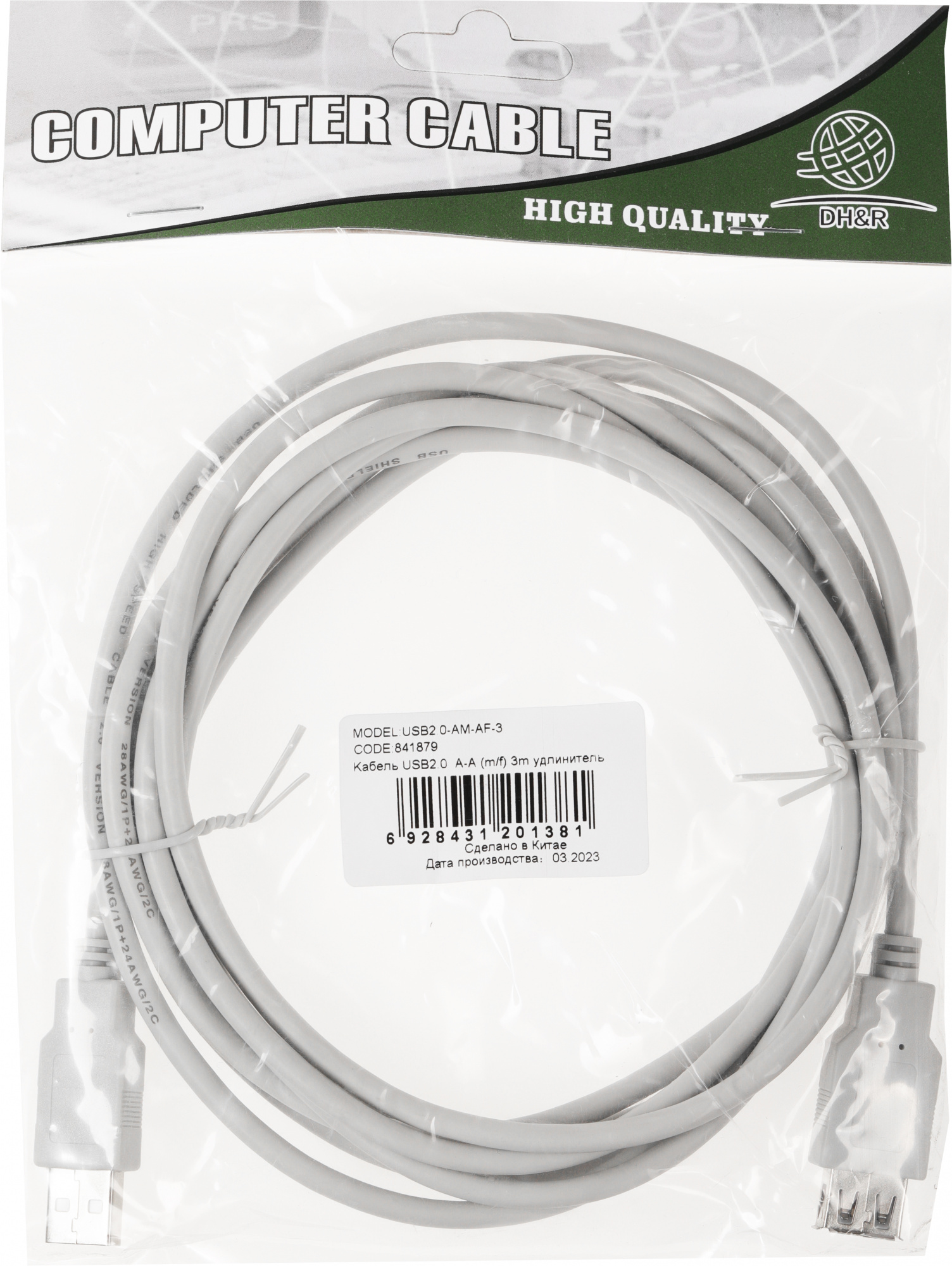 Стандартный кабель-удлинитель для устройств USB 2.0. Может быть использован для увеличения длины кабелей клавиатуры, мыши, Web-камеры, картридера и прочих устройств. Длина 3 метра.