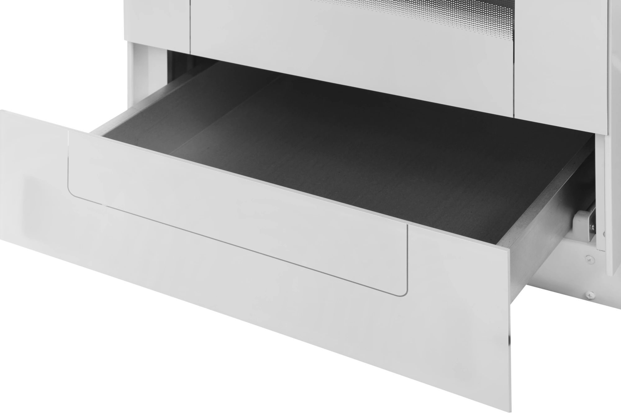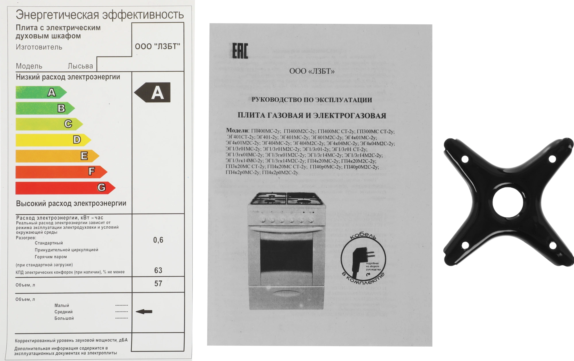 Элементы комфортности: подсветка духовки; дверца съёмная с двойным стеклом; выдвижной ящик для хранения кухонных принадлежностей; подставка для посуды малого диаметра. Плита комплектуются одним противнем, одной решеткой духовки, соединительным электрошнуром и розеткой.