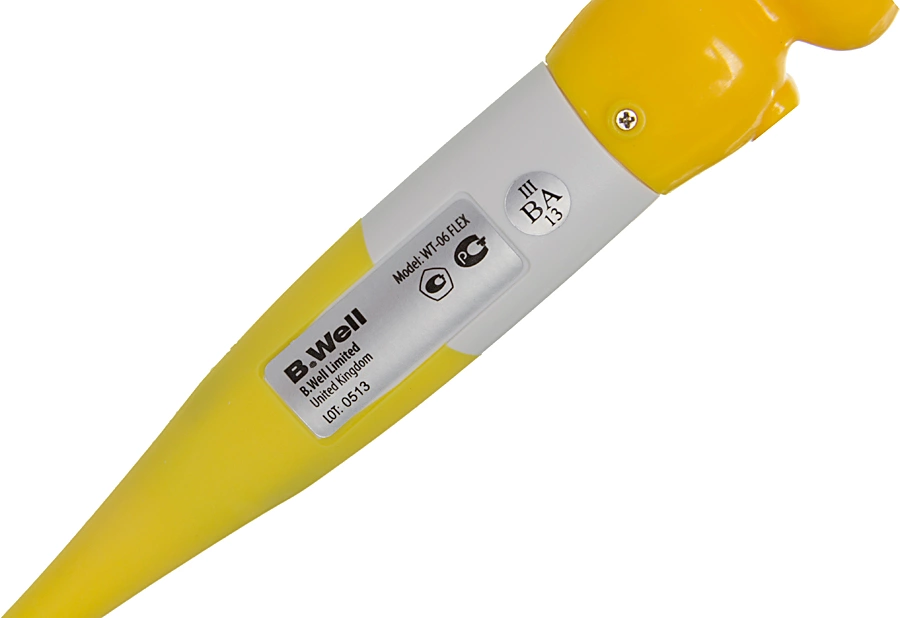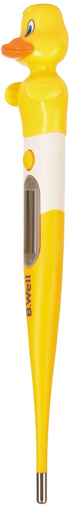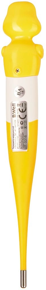 Яркий детский дизайн. Быстрое измерение от 6-ти секунд. Без ртути и стекла. Гибкий наконечник. Память последнего измерения. Автоматическое отключение. Влагонепроницаемый корпус. Специальный звуковой сигнал при повышенной температуре. Защитный футляр и батарейка в комплекте.
