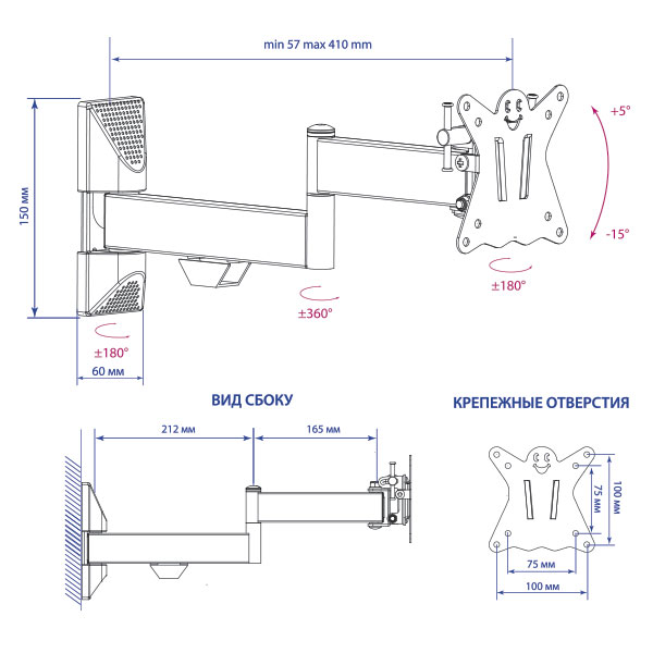 черный 10"-32" макс.25кг настенный поворот и накло...