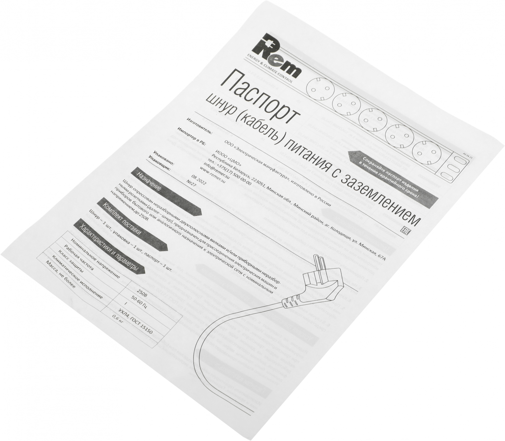 C19-C20 проводник.:3x1.5мм2 1.8м 220В 16А (упак.:1...