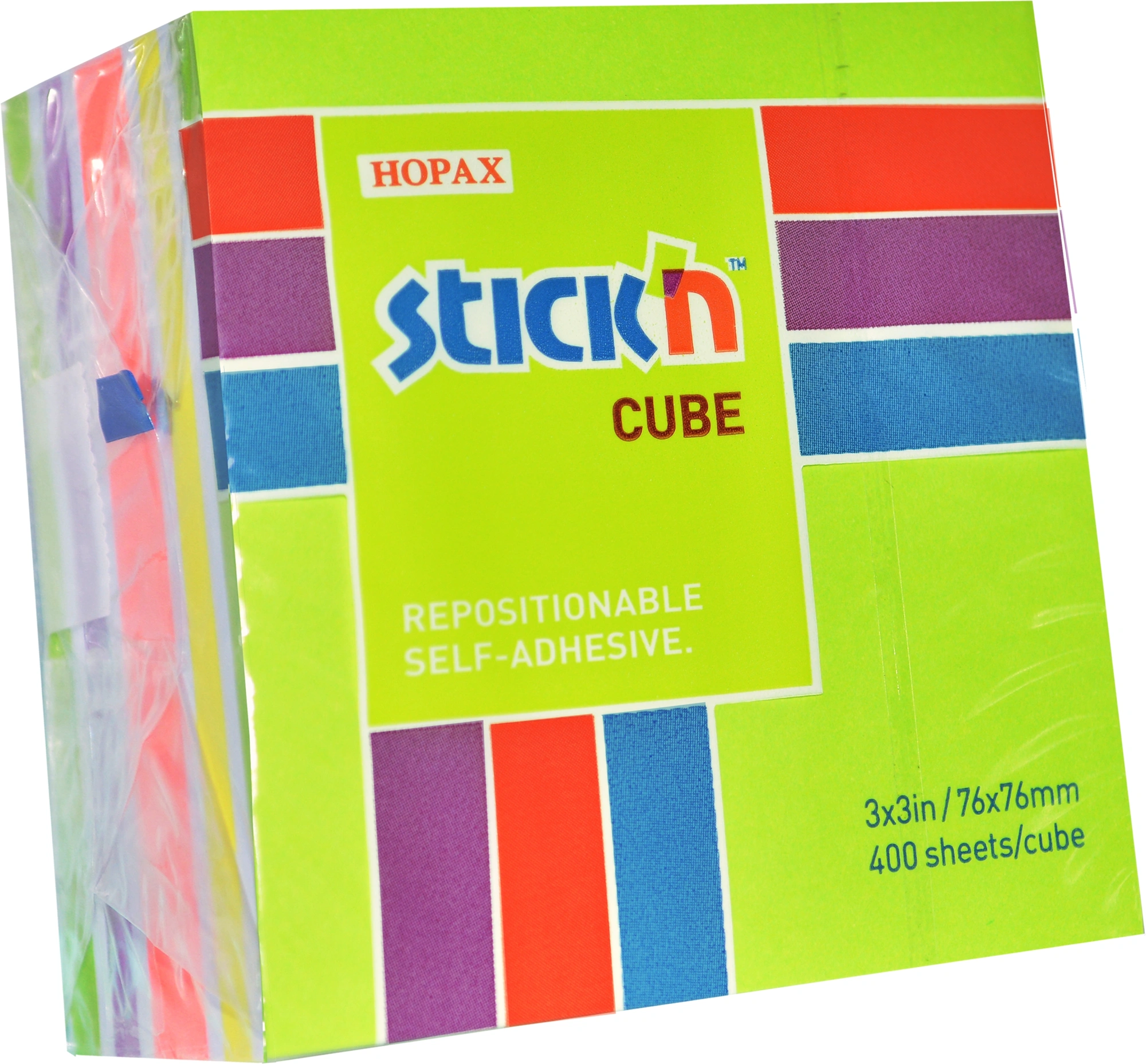 Блок самоклеящийся бумажный Stick`n 21537 76x76мм 400лист. 70г/м2 неон+пастель 5цв.в упак.