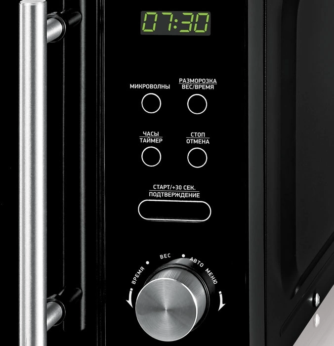 звуковой сигнал окончания приготовления, кнопка +30 секунд, регулировка мощности