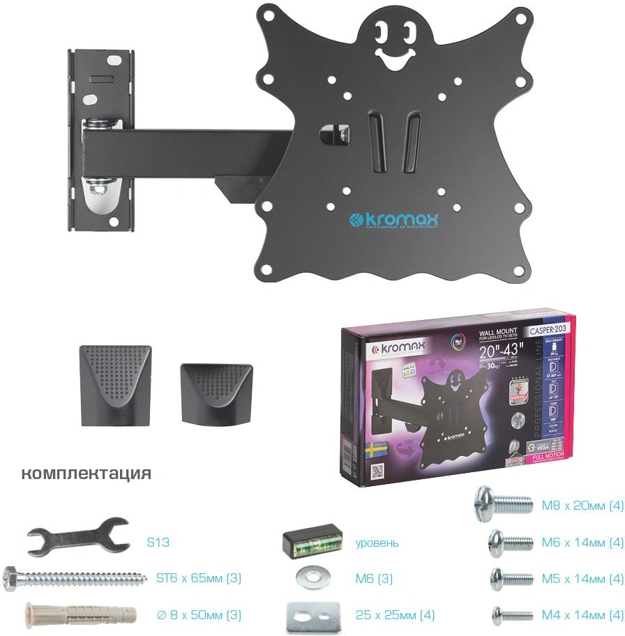 черный 20"-43" макс.30кг настенный поворот и накло...