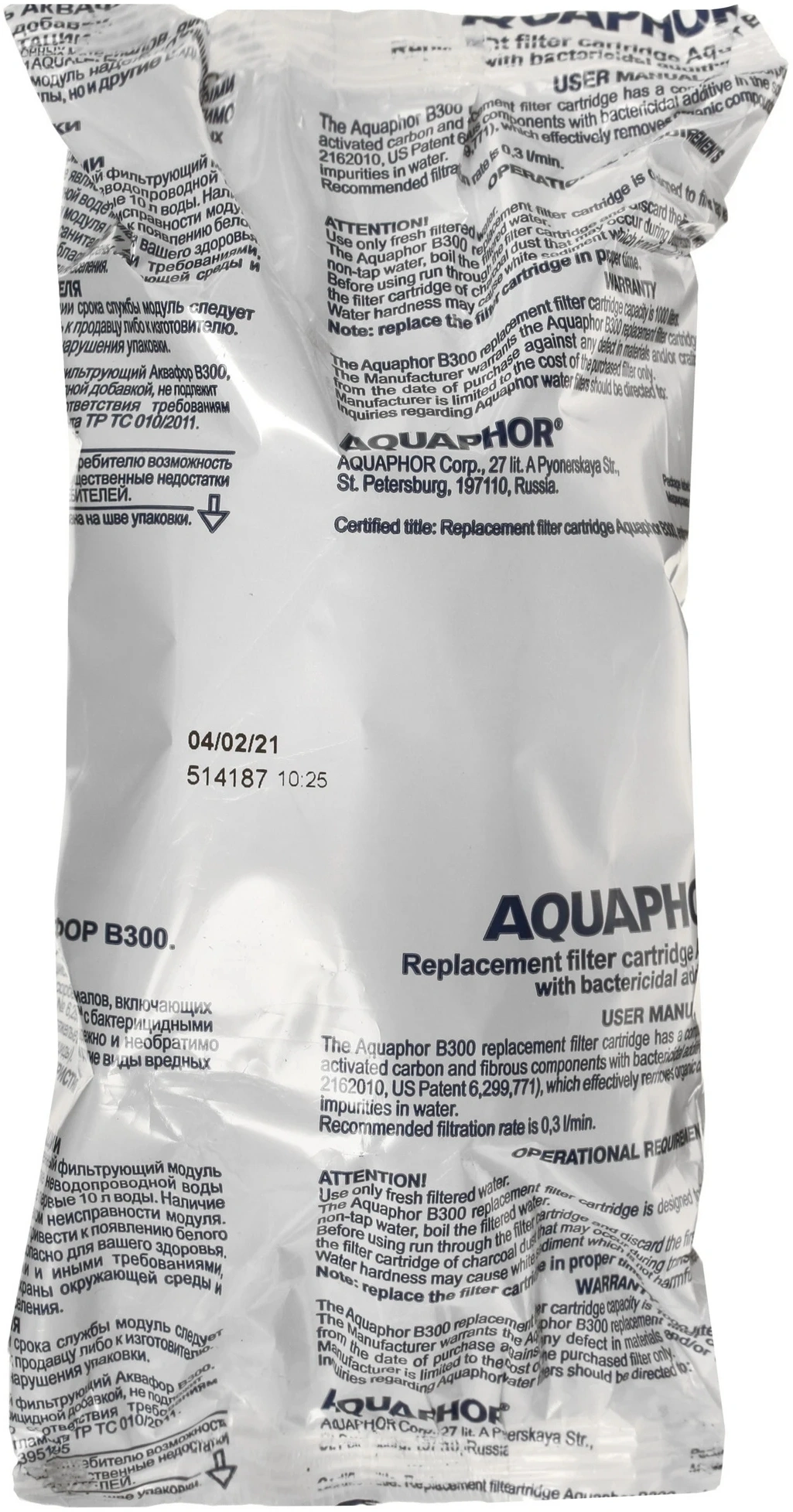 Модуль B300 (бактерицидный) - благодаря уникальному сочетанию волокнистых и гранулированных сорбентов насадка на кран глубоко очищает воду, несмотря на малые габариты. В качестве бактерицидной добавки содержит активное ионное серебро, динамически закрепленное в волокне АКВАЛЕН.