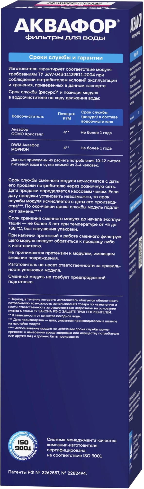 Сменный модуль для кондиционирования воды. Используется в системах АКВАФОР Морион М. Насыщает воду полезными минералами. Картридж заменяется вместе с корпусом для бактериостатичности.