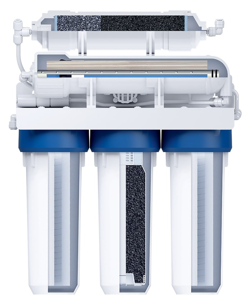 Фильтр является отличным умягчителем воды, который навсегда избавит вас от накипи. Диаметр пор мембраны настолько мал, что они пропускают только молекулы воды, задерживая даже бактерии и вирусы.
