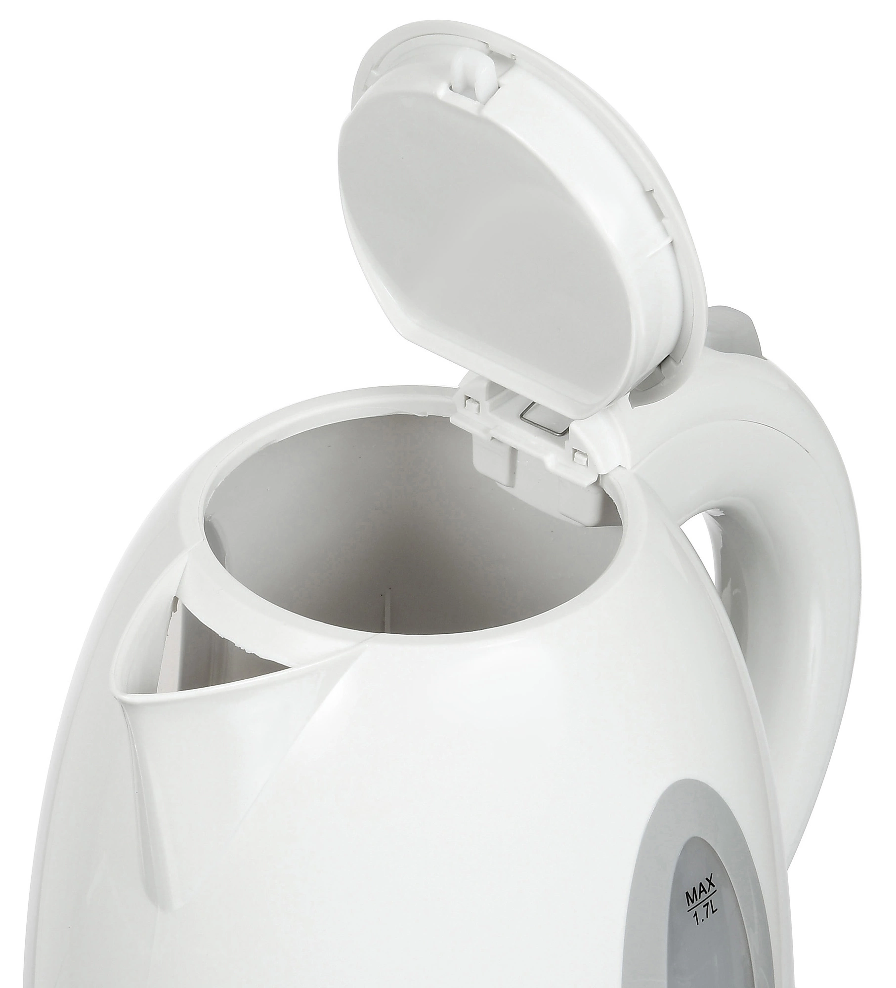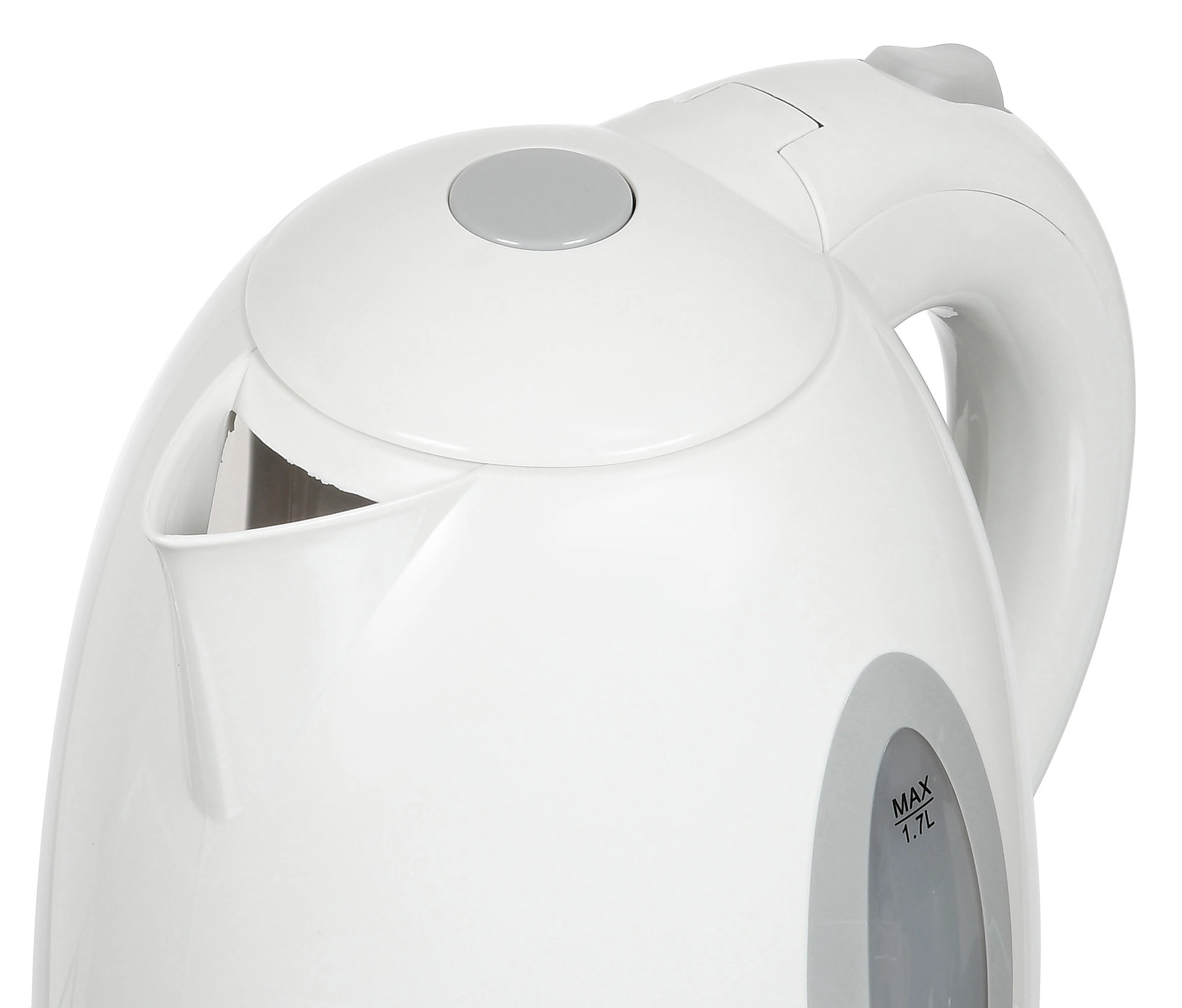 Классический дизайн модели электрического чайника STARWIND SKP2211 идеально впишется в интерьер любой кухни. Корпус выполнен из пластика белого цвета с элементами декора в сером цвете. По центру расположено окошко, через которое наглядно видно количество воды, а также нанесена мерная шкала. Кнопка включения, как и во многих моделях, расположена на ручке в верхней части. Кнопка оснащена световым индикатором, оповещающим о включении и процессе кипячения воды. После того, как вода закипит, чайник отключается автоматически, а в случае, если прибор был включен без воды, то сработает защита, и он просто не включится, тем самым сохранив нагревательные элементы в рабочем состоянии. Крышка в STARWIND SKP2211 несъемная. Для открытия крышки чайника предусмотрена специальная кнопка.
