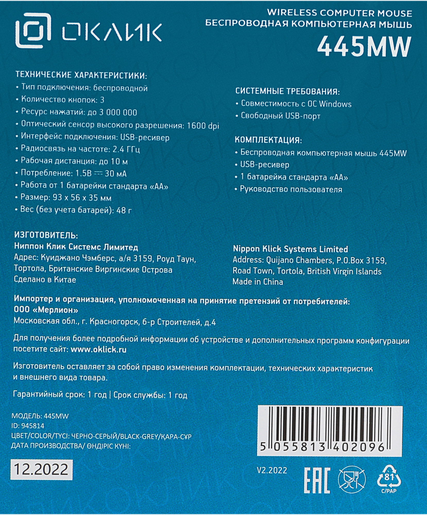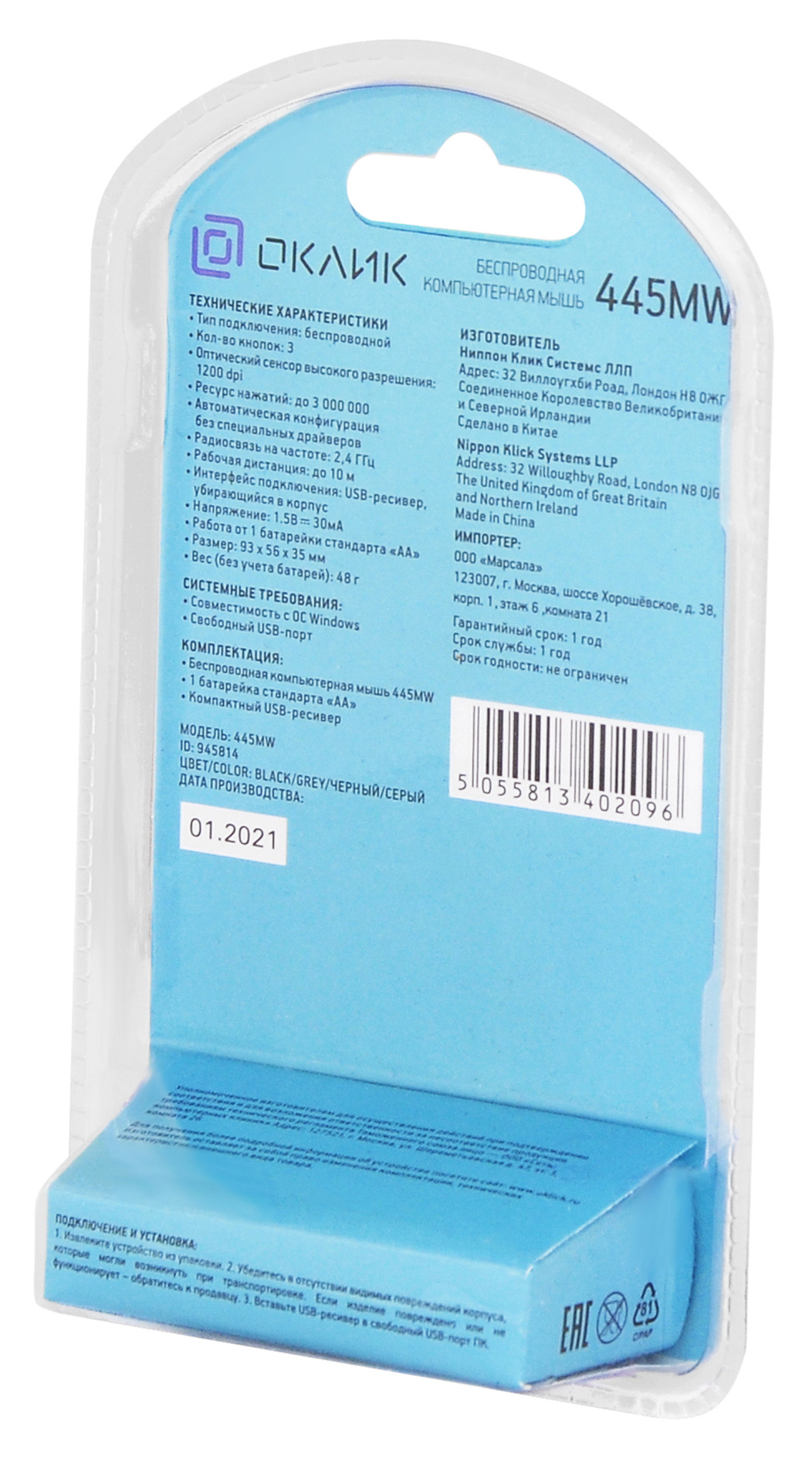 Офисная модель Oklick 445MW выполнена в стильном лаконичном дизайне, имеет обтекаемую симметричную форму, подходит для правой и для левой руки. Ее удобно использовать как дома и в офисе, так и во время поездок. У этой мыши 3 кнопки с ресурсом до 3 млн кликов.