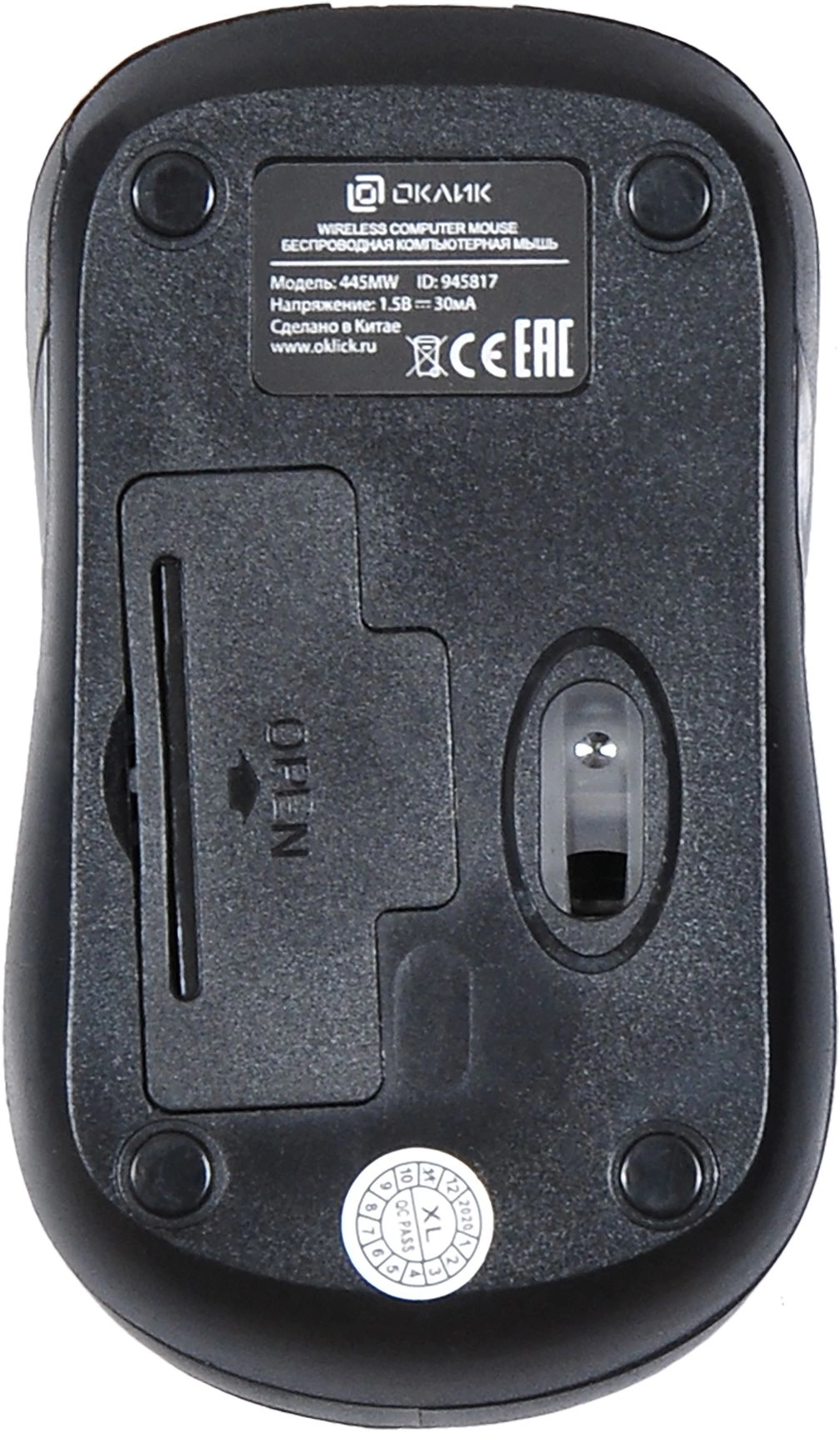 Беспроводная модель Oklick 445MW выполнена в черном цвете и имеет стильный лаконичный дизайн. Благодаря симметричной форме корпуса мышь подходит для правой и левой руки. Устройство весит всего 57 г, поэтому им удобно пользоваться и дома, и в офисе, и во время поездок.