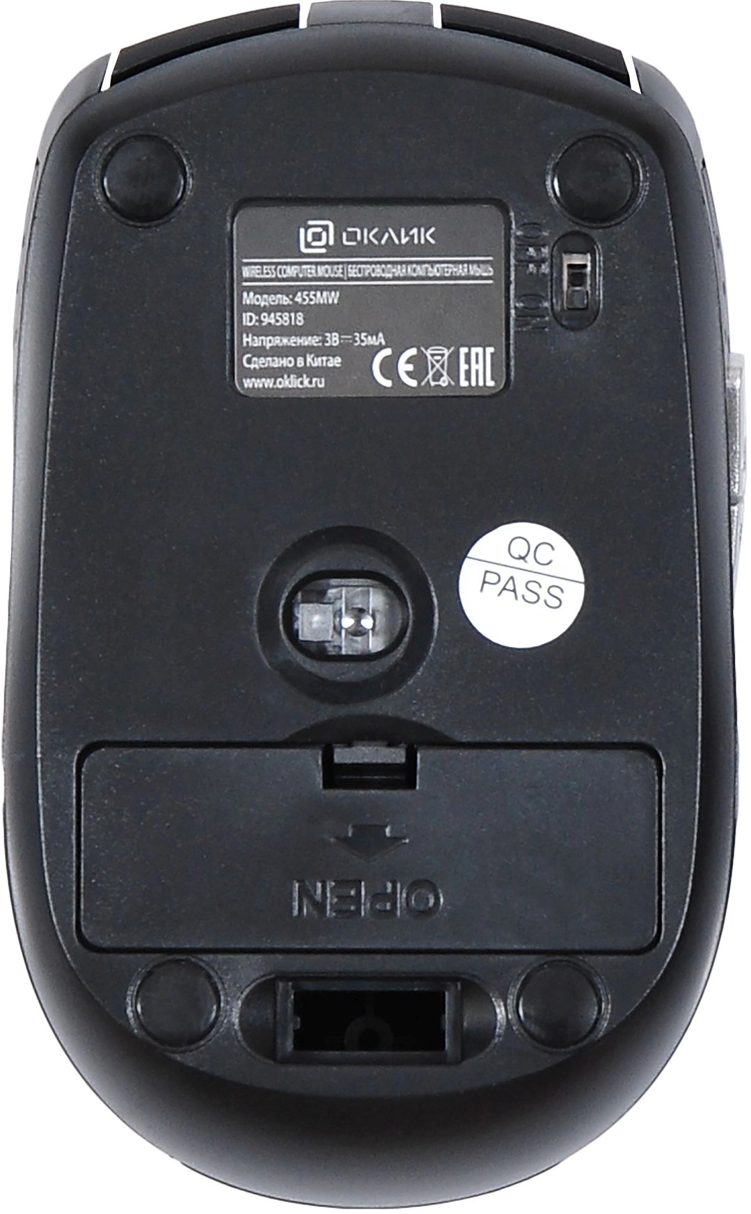 Гаджет выделяется лаконичным дизайном и продуманной конструкцией. Устройство надежно держится в руке благодаря нескользящему покрытию soft-touch. Прорезиненное колесо прокрутки повышает точность управления. Насечки на боковых сторонах корпуса способствуют лучшему контакту руки с поверхностью мыши. Благодаря компактным размерам и небольшому весу в 56 г Oklick 455MW легко поместится в сумку и подойдет для использования в поездках и транспорте.