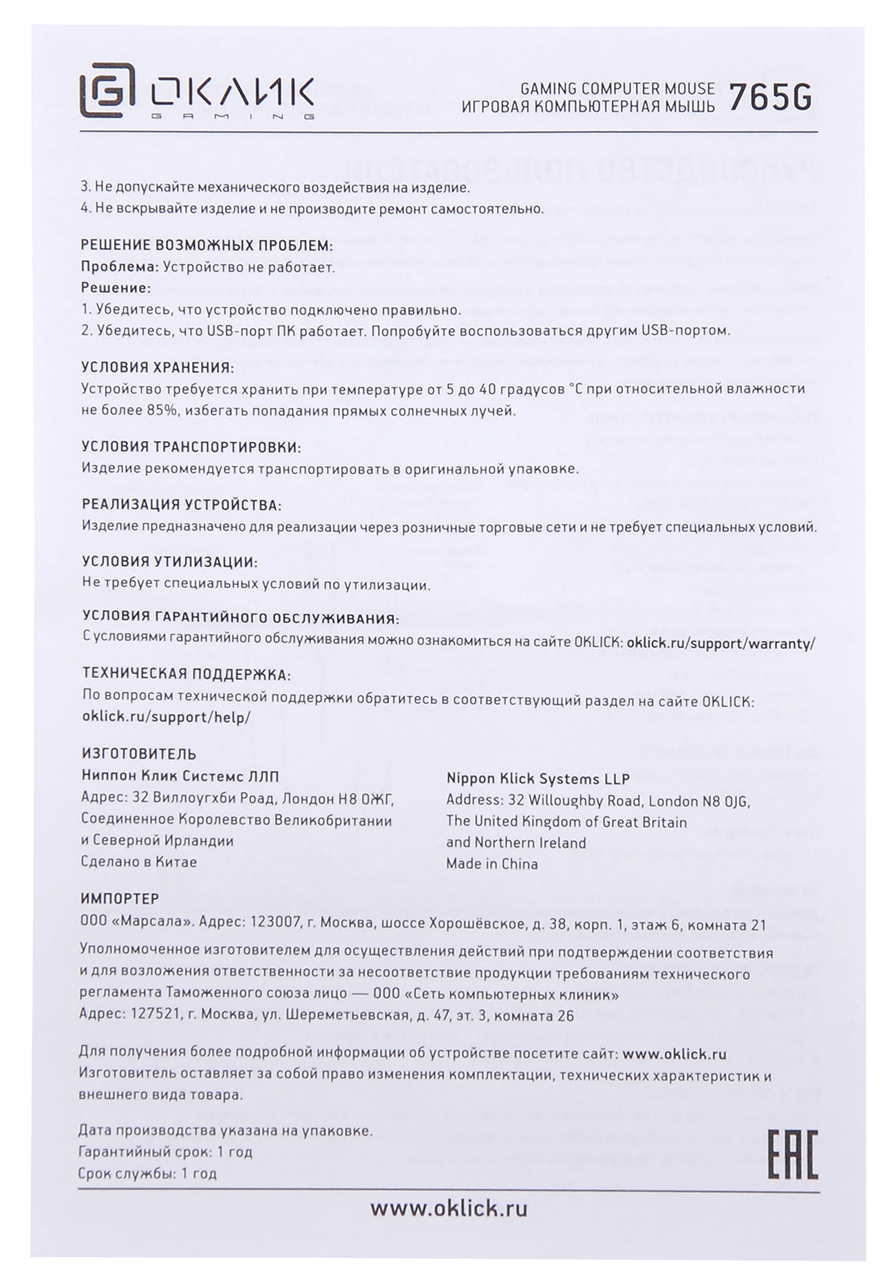 6-кнопочная игровая мышь Oklick 765G SYMBIONT доступна в MERLION.