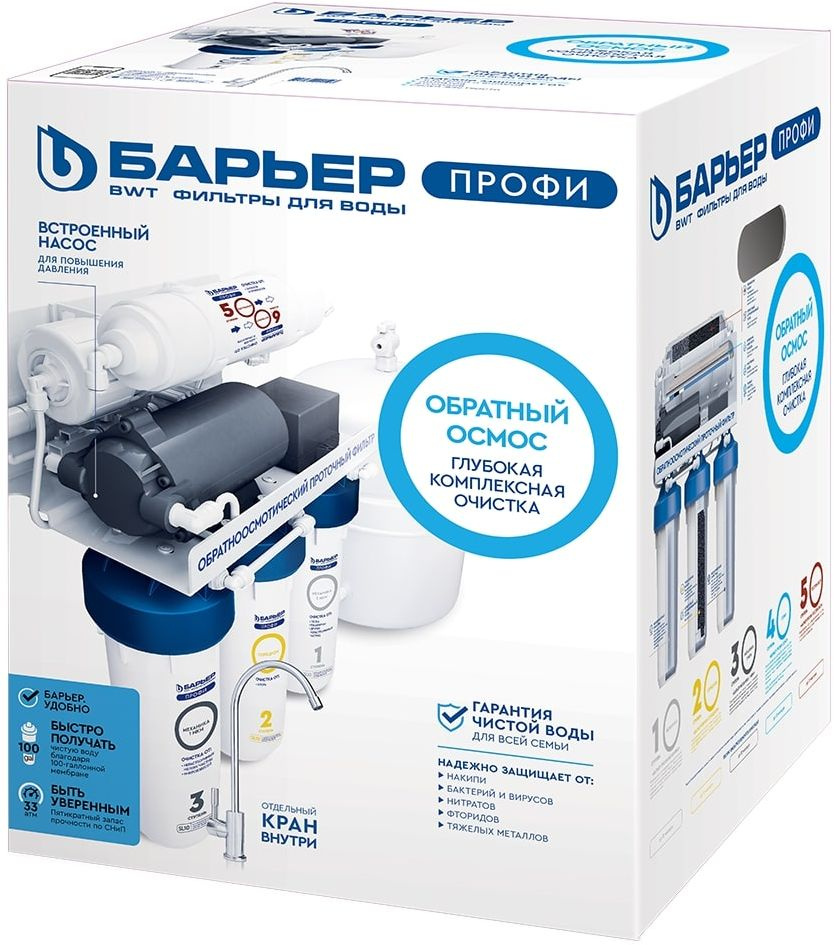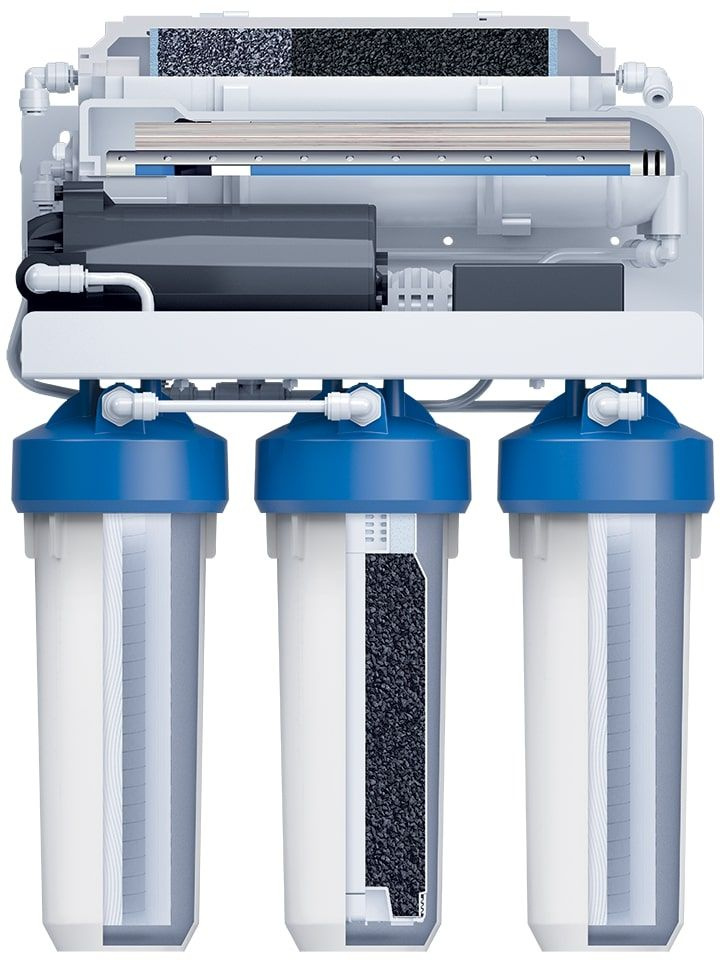 Система для очистки воды методом обратного осмоса. Позволяет обеспечить семью кристально-чистой и водой, не уступающей по качеству бутилированной.