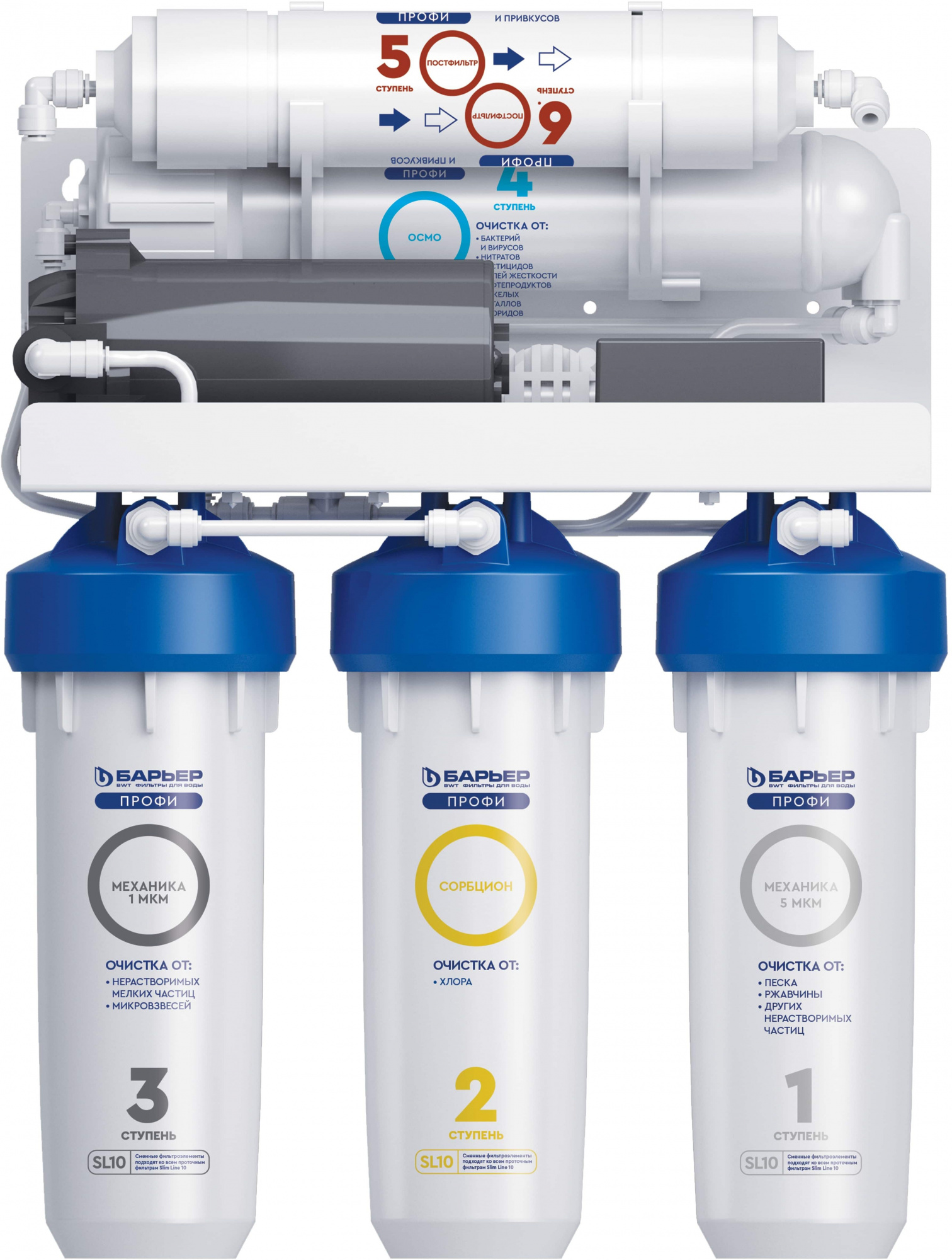 Фильтроэлемент Профи Механика 5 мкм, Фильтроэлемент ПРОФИ Сорбцион 2-я ступень, Фильтроэлемент Профи Механика 1 мкм, Фильтроэлемент ПРОФИ Осмо 100 (мембрана) 4-я ступень, Фильтроэлемент ПРОФИ Постфильтр 5-я ступень