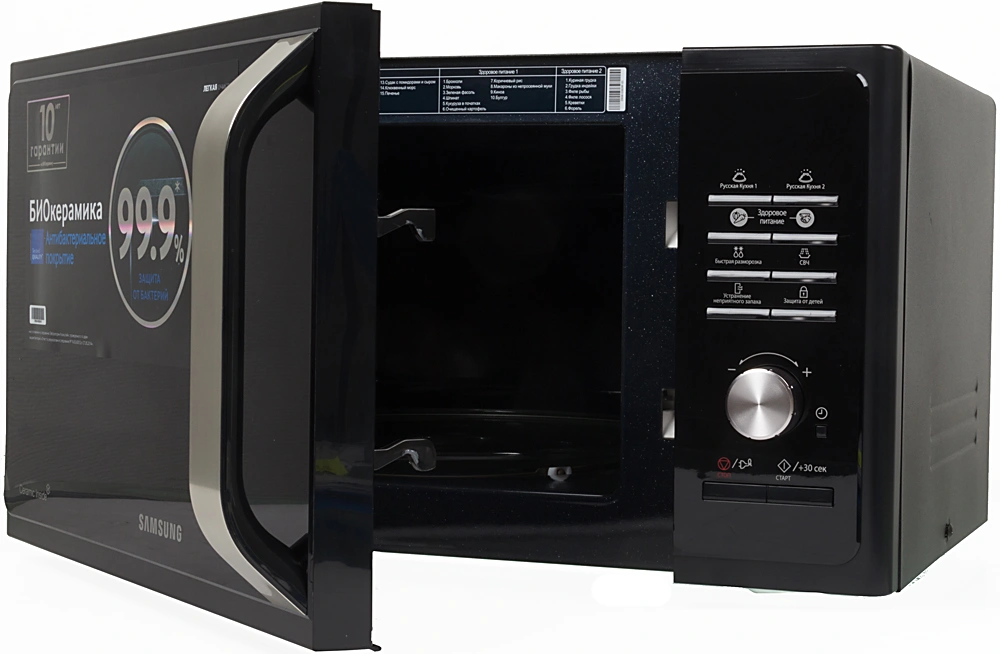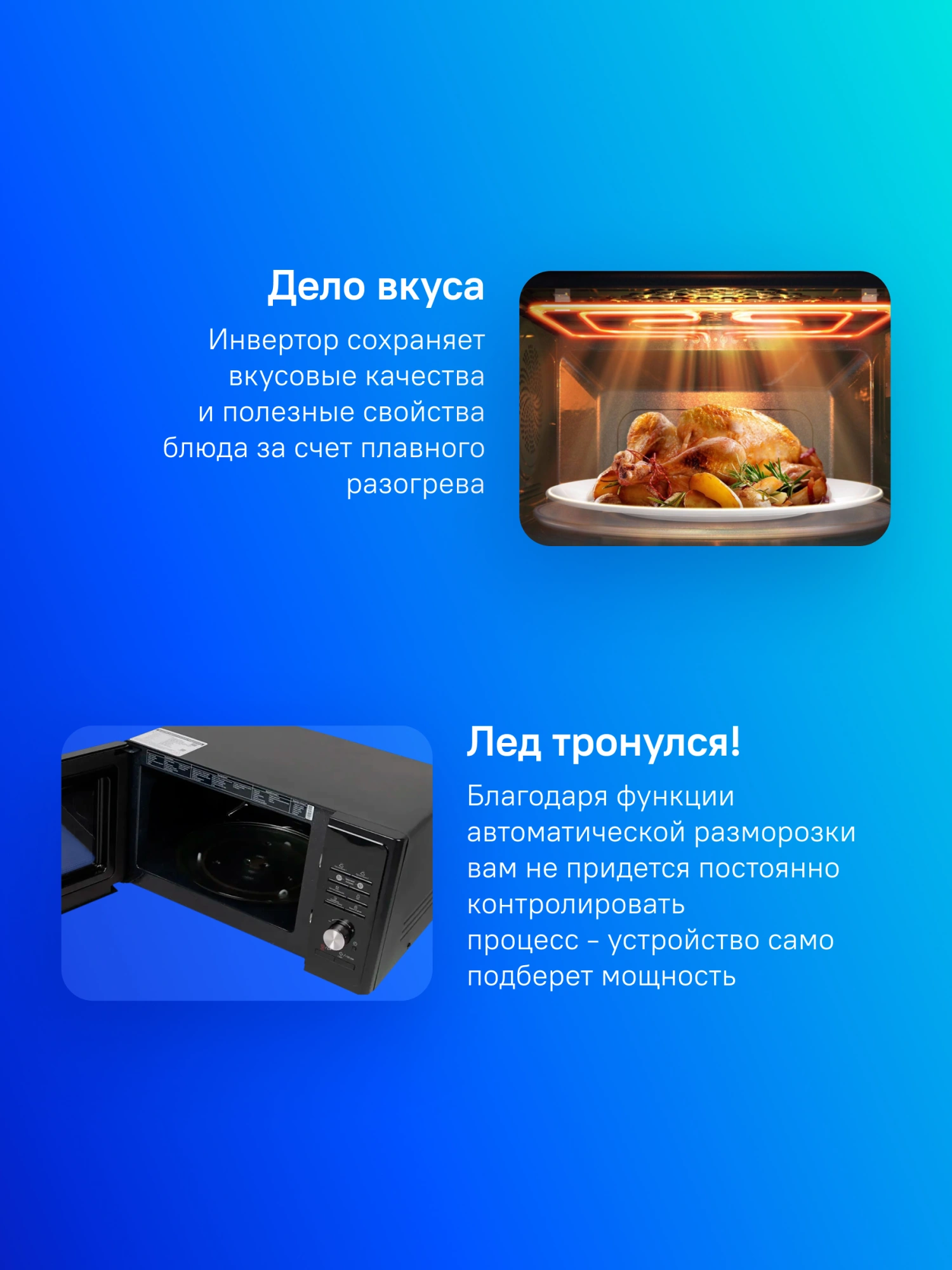 размораживание по весу, режим удаления запахов, система равномерного распределения микроволн, ускоренная разморозка