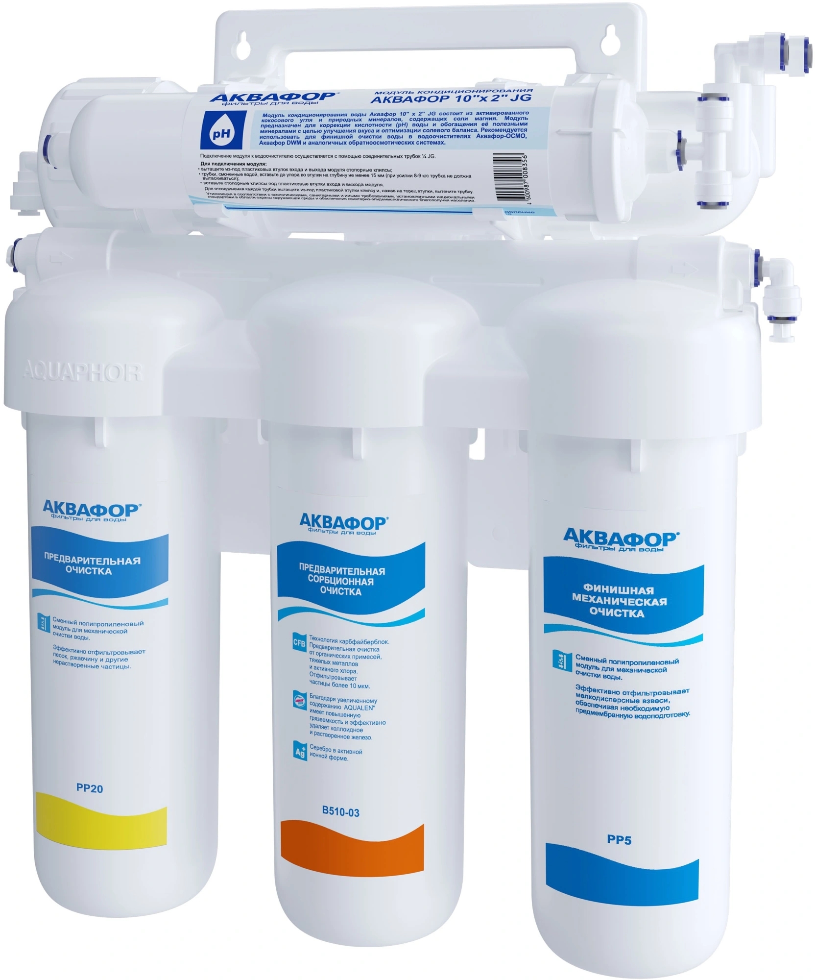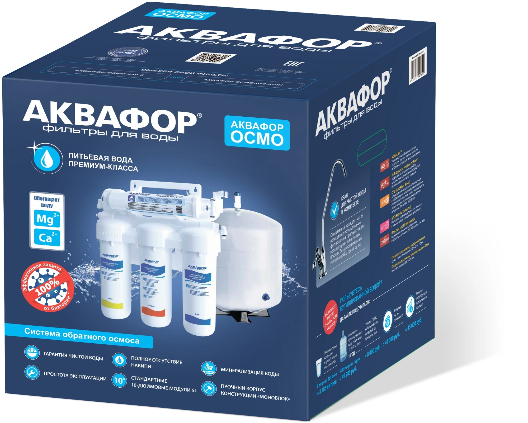 Аквафор Осмо 50 исп. 5 эффективно умягчает воду и борется с мутностью. Уникальная полупроницаемая мембрана в сочетании с угольными модулями с Акваленом обеспечивает ультратонкую очистку воды, удаляя опасные примеси размером до 0,0005 микрон