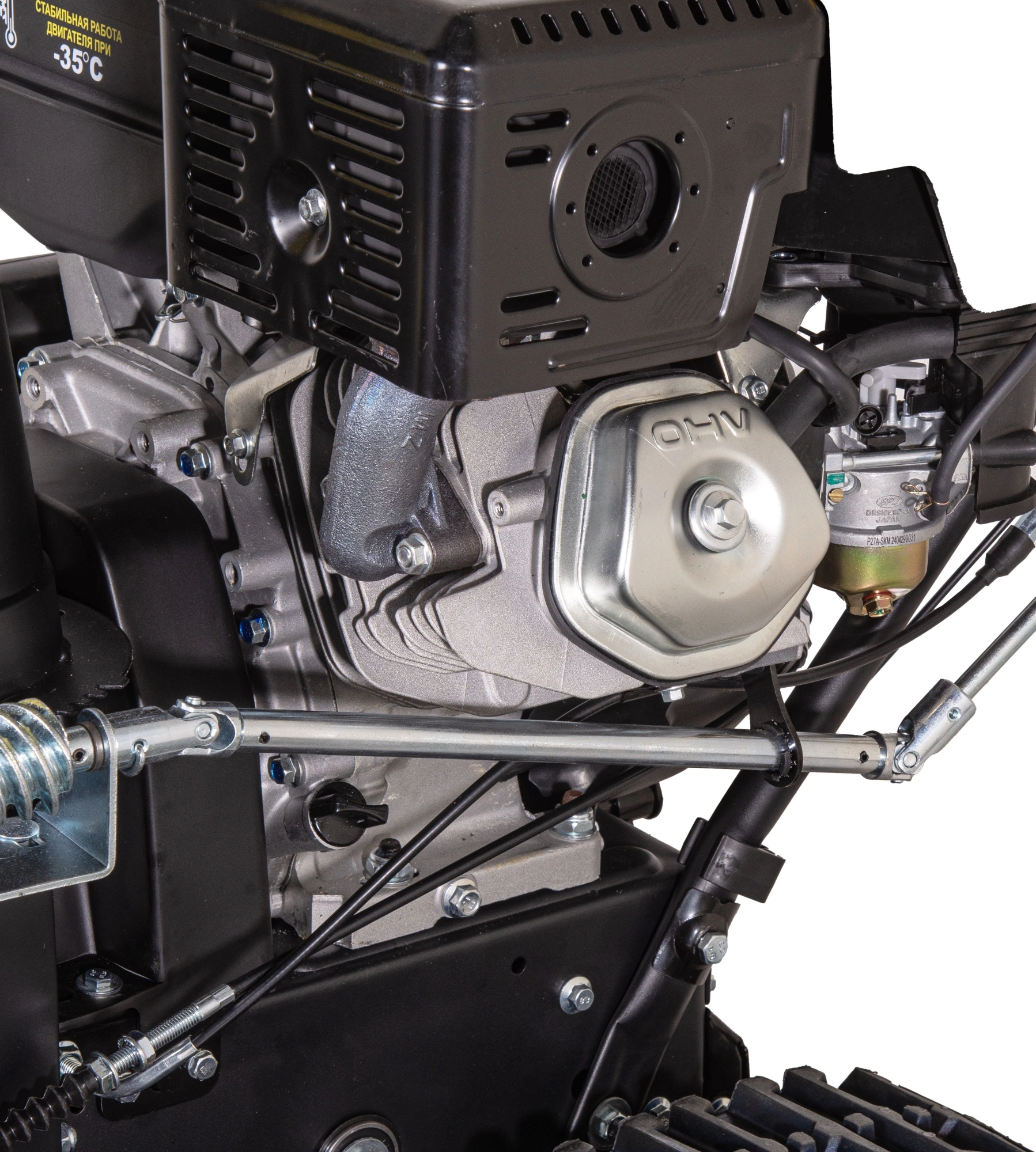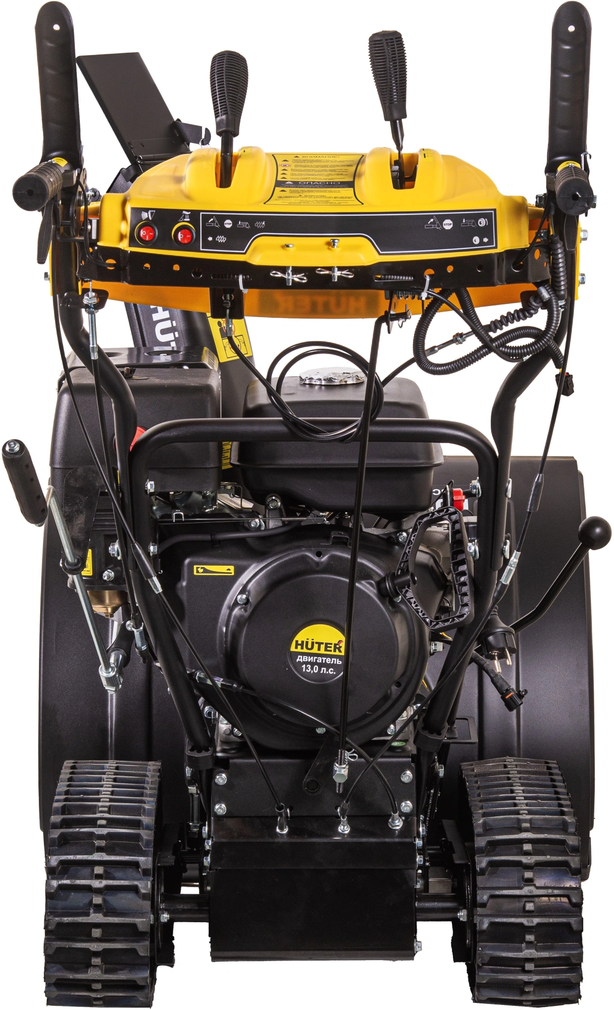 Снегоуборщик в сборе с гусеницами, Рычаг поворота желоба, ограничительные башмаки 2шт, рукоятка управления с панелью в разборе, крепежный комплект, паспорт изделия