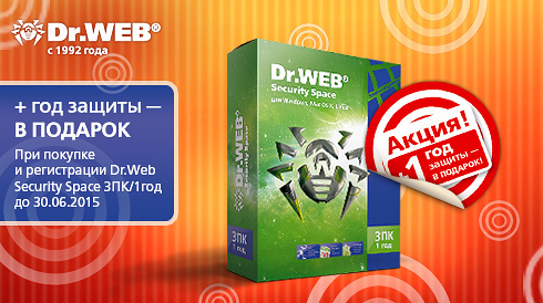 Компания MERLION в рамках совместной акции с компанией «Доктор Веб» представляет своим партнерам коробочный антивирус Dr.Web Security Space (3 ПК / 1 год) с удвоенным сроком действия. C 15 апреля по 30 июня предлагайте своим клиентам купить годовую лицензию для защиты 3 ПК/Мас, и в момент регистрации покупателем(только в эти дни) серийного номера срок действия лицензии будет автоматически увеличен в два раза!