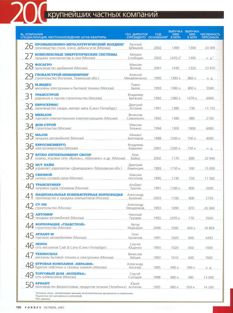 В рейтинге Forbes "200 крупнейших частных компаний" (октябрь