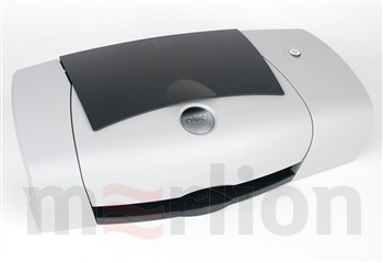 Персональный струйный принтер начального уровня выполнен в фирменных черно-серых цветах Dell. Разрешение печати до 4800×1200 dpi, скорость — до 13 стр./мин черно-белая печать и до 8 стр./мин цветная. Система печати — 4-х цветная (CMYK).